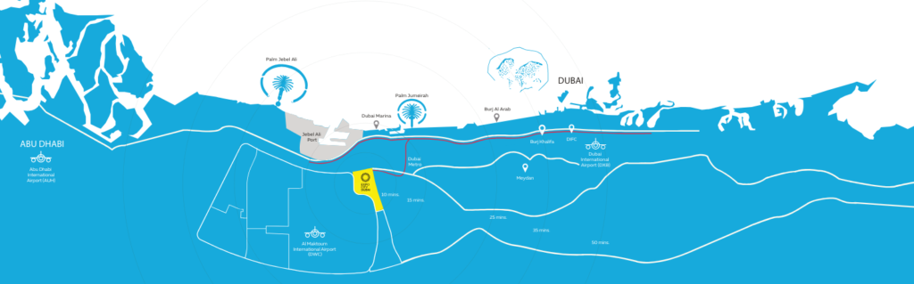 Sky Residences is nestled in the heart of Expo City Dubai, ensuring seamless connectivity to Dubai, Abu Dhabi, and the Northern Emirates via major highways such as Sheikh Mohammed bin Zayed Road, Sheikh Zayed Road, Emirates Road, and Al Khail Road.